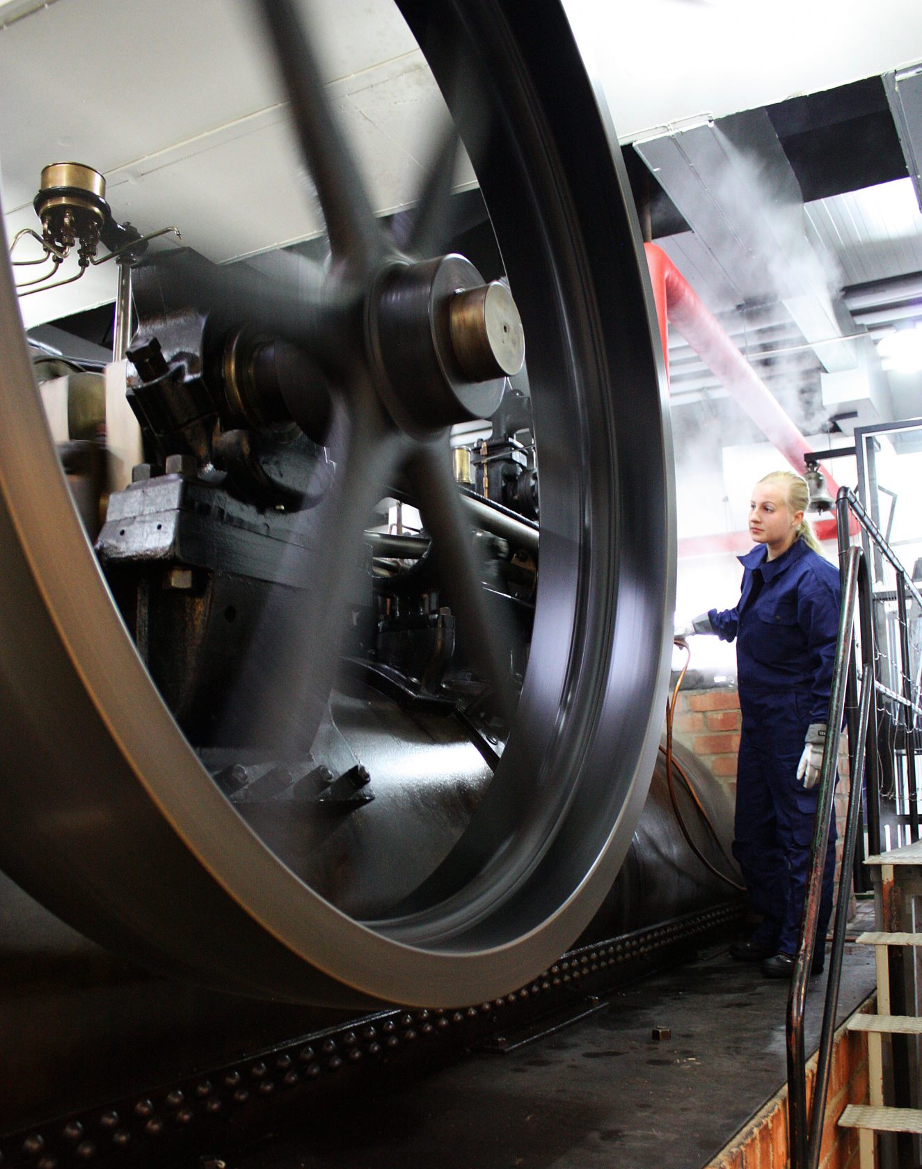 Ångmaskinerna som finns på stadsmuseet får liv. Maskinisterna eldar i ångpannan som får de stora maskinerna i rörelse och i ångmaskinhallen kan besökaren uppleva hur de mäktiga maskinerna drevs under sina glansdagar.