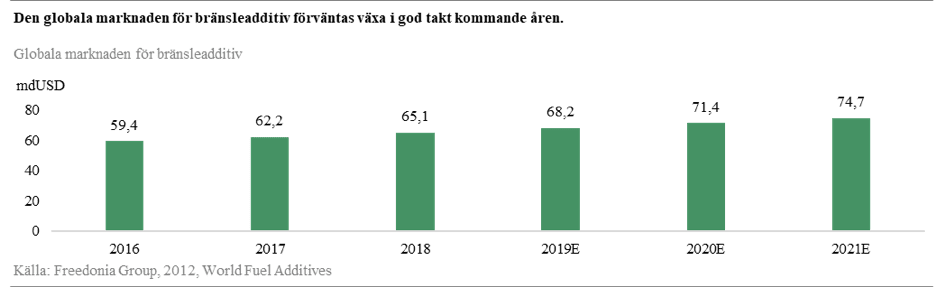 Den globala efterfrågan av bränsleadditiv förväntas uppgå till +700 miljarder kronor 2021
