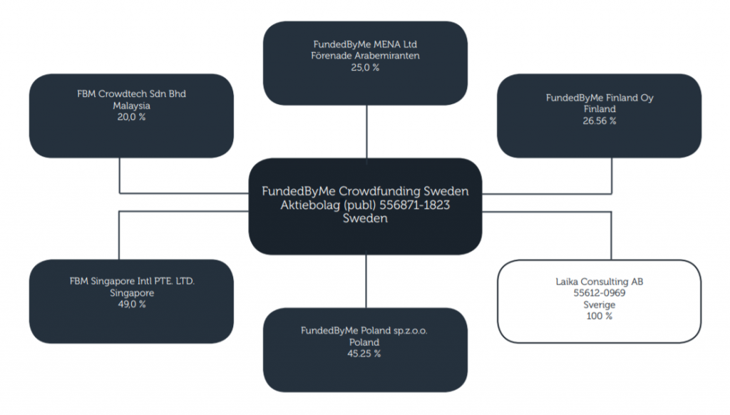 FundedByMes koncernstruktur kan ses nedanför med intressebolag och dotterbolag.