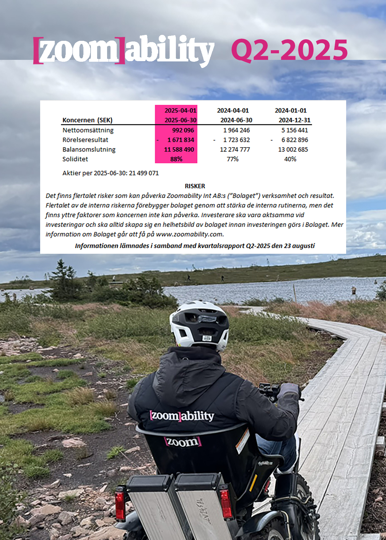 En viktig händelse efter kvartalets utgång är att vi fått Zoom Uphill registrerad som medicintekniskt hjälpmedel. Det gör det nu lättare för personer med funktionsnedsättning att få Zoomen utskriven som kostnadsfritt hjälpmedel, inte bara i Sverige utan i en hel del andra länder i Europa.